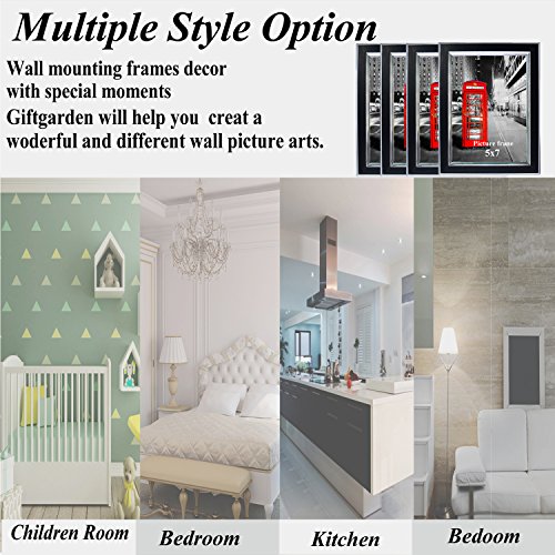 The hang picture frame sets contain four picture frames, and the the size of frame on outline border is 16.2x21.2 cm(6.4x8.4 inch). It holds a 5x7 inch photo or your favorite art. Perfect for creating the gallery wall look anywhere in your home or office.