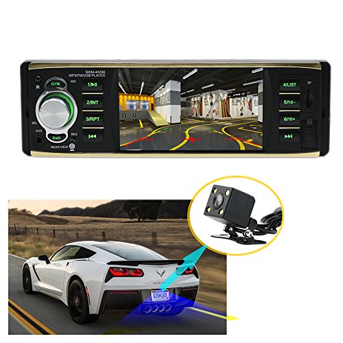 Kindly Attention: ❤ Professional guidance needed for installation. If not, please go for professional help. Wrong installation will cause short circuit⚠ Product Features: ➊ Electronic PLL turning control with 18 memory stations ➋MODE-Function Selector:RADIO→USB→SD→AUX-IN→BT ➌ RM/RMVB/MP1/MP2/DIVX/XVID/MP4/H263/H264/FLV/3GP/SWF/AVI/ASF/MJPEG files reader ➍Preamplified Line-out, could connect subwoofer directly ➎Front Audio Aux-in, USB Port and Micro SD Input, with Steering Wheel control ➏ Last track memory, folder play function and ID3 Play Specifications: ✶Input voltage: DC12V ✶Output power: 4X60W high power output ✶Size:188mm*58mm*120mm Packing List: ☑1 * Car MP5 Player ☑1 * Remote control ☑2 * Power Cables ☑1 * User Manual ☑1 * backup cameraFeature