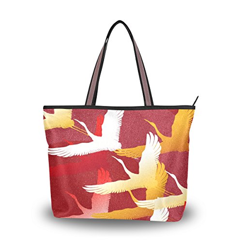 원본상품명: マキク(MAKIKU)ト?トバッグ レディ?ス 飛べ 鶴 モチ?フ 和風 レッド ショルダ? キャンバス 大容量 通勤 通? a4 ファスナ?付き 2way ?量 マザ?ズバッグ 手提げバッグ ビジネ