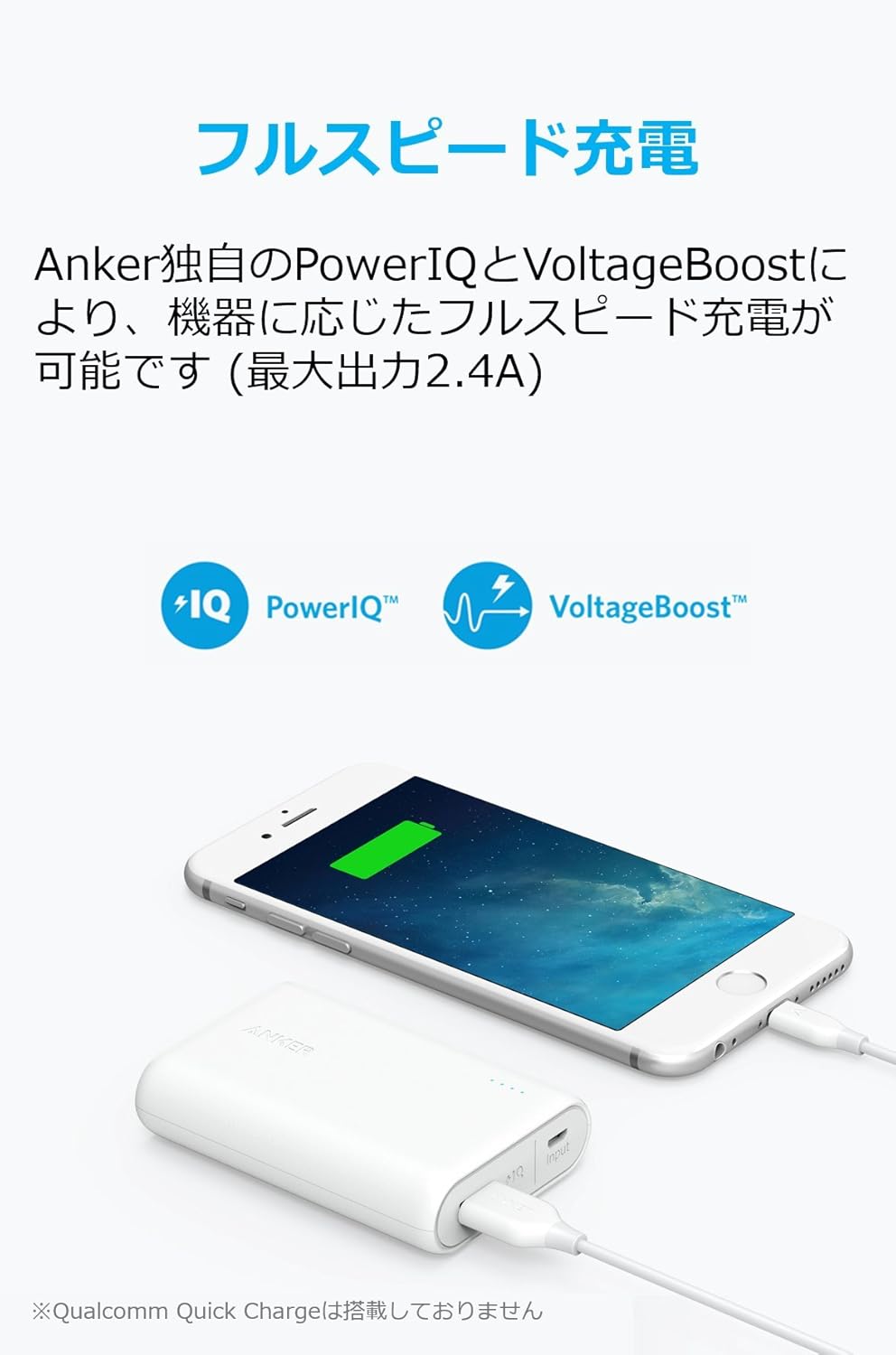 フルスピード充電技術:Anker独自技術PowerIQとVoltageBoostにより、お使いのすべての機器に対し、最大2.4Aで急速充電が可能です。 (*Qualcomm Quick Charge対応機種には、Anker PowerCore Speed 10000 QCをご利用下さい)