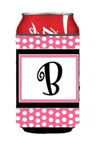 Letter B Initial Monogram - Pink Black Polka Dots Can or Bottle Beverage Insulator Hugger