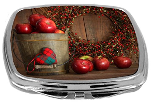 Rikki Knight Compact Mirror, Autumn Apples In Wood Bucket