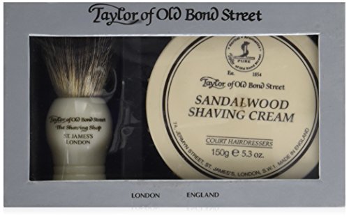 Pure Badger Shaving Brush and Sandalwood Shave Cream Bowl 150g in Gift Box 2 shave set by Taylor of Old Bond Street