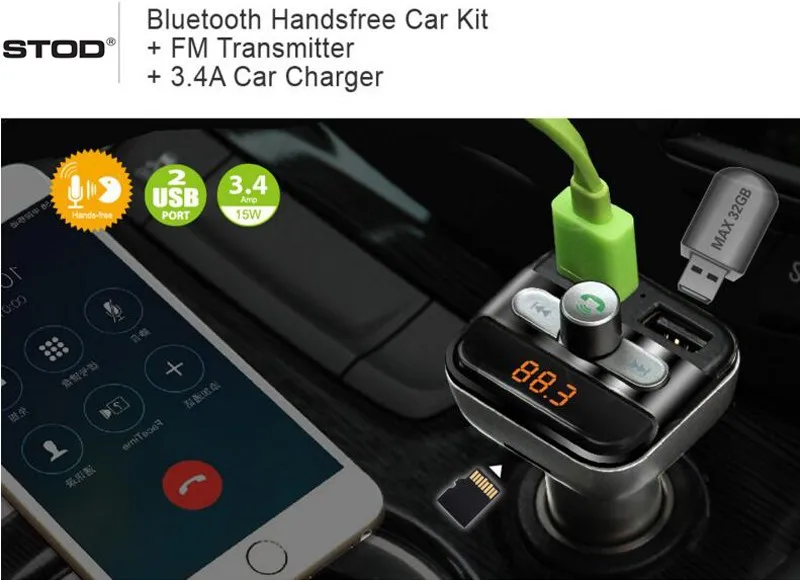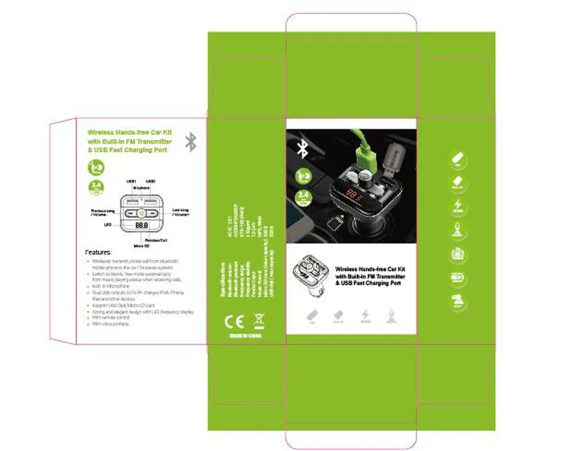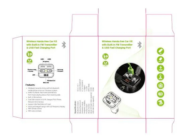 Model Number:2 USB car bluetooth charger