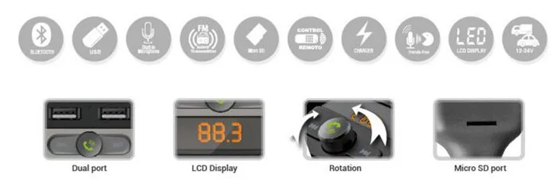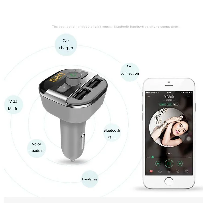 Name:2 USB car charger bluetooth