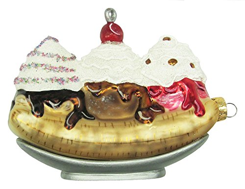 Ice Cream Dessert Banana Split Cherry on Top Glass Holiday Ornament