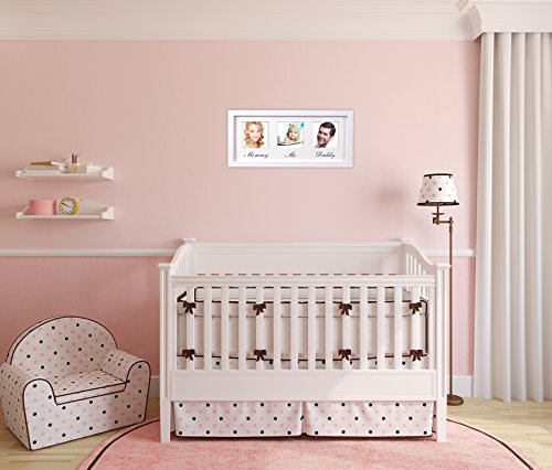 -. Feature : BEAUTIFUL WOOD FRAME: Each baby picture frame is surrounded by gorgeous solid wood painted in white; designed to fit perfectly in any room of your house, especially the nursery room. / EASY TO SET UP: With customers in mind, our classic looking photo frame is easy to hang and insert the photos. What's more, it can it into 4x6" standard size photos with or without trimming. / PERFECT FIRST FAMILY FRAME: Featuring 3 "openings", there is one separate slot for mom, dad, and the baby. Now it's easy to see from which part of the parents that the baby picks up the feature from! And you can also put in the childhood photos of parents for a better comparison. The photos can be changed as the baby grows and this sturdy frame does last! / SHATERPROOF GLASS-LIKE ACRYLIC: Your safety is paramount, which is why our baby frames come with shatterproof, glass-like acrylic that makes it lighter and safer; especially if you hang it in the baby's room. / MAKES A GREAT GIFT: This baby keepsake frame makes it perfect as baby shower gifts, first birthday gifts or new parents/grandparents gift. It also comes with a lifetime warranty. If you have any problems whatsoever, simply send us a message and we'd be happy to issue you a refund or replace the item.