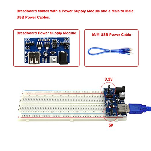 Electronics Component Fun Kit w/ Power Supply Module, Jumper Wire, 830 tie-points Breadboard, Precision Potentiometer ,Resistor for Arduino, Raspberry Pi, STM32