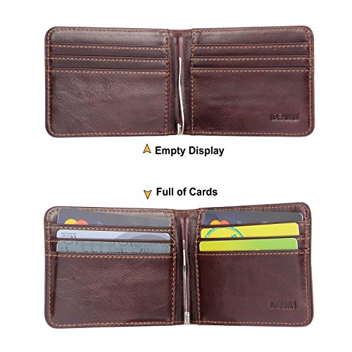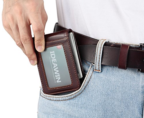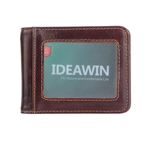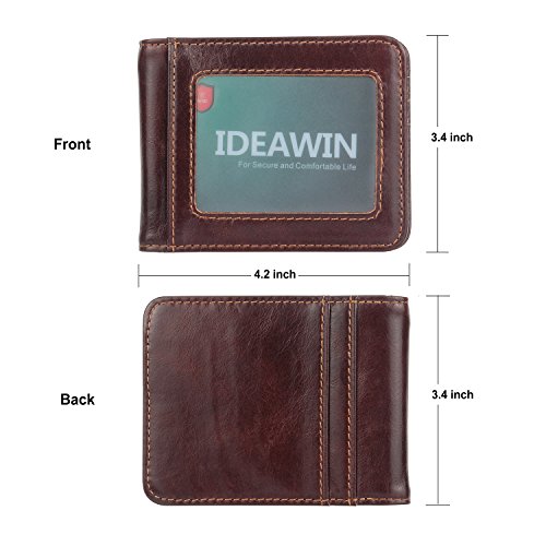 -. Feature : ✓ 100% GENUINE LEATHER &PREMIUM CRAFTSMENSHIP-Sourcing the best quality full grain genuine leather, features premium stitching ,durable and gives you perfect feeling . Product dimensions: (L)4.25" x (W)3.35" x (H)0.59" inches, and the weight is 1.97 ounces. / ✓ PREMIUM FUNCTIONALITY-IDEAWIN RFID wallet not only offers security, it's also very functional. It features 8 card slots for you to place most frequently used cards,1 quick acess ID window,interior strong sP.R.Ing loaded money clip which keeps to store money securely. / ✓ ENHANCES PERSONAL SECURITY-We leverage top RFID technology to block RFID signals used to electronically scan your wallet as someone passes by unnoticed. This RFID blocking money clip wallet is a powerful shield against financial data theft, as well as ID theft,it keeps your vital information from being stolen. / ✓ PERFECT GIFT-Each wallet comes in an elegant gift box with a soft, protective bag, ready for gift giving! The best minimalist RFID blocking money clip genuine leather wallet for men on Amazon! / ✓ QUALITY GUARANTEED- IDEAWIN genuine Leather wallet gives you perfect feeling, and we promise our great quality and design will make you satisfied! Replacing or Money Back with No Hassle.