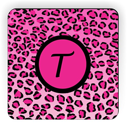 Rikki Knight Letter "T" Initial Hot Pink Leopard Print Monogrammed Design Square Fridge Magnet