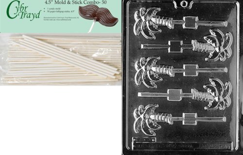 Cybrtrayd Palm Tree Lolly Fruits and Vegetables Chocolate Candy Mold with 50 4.5-Inch Lollipop Sticks