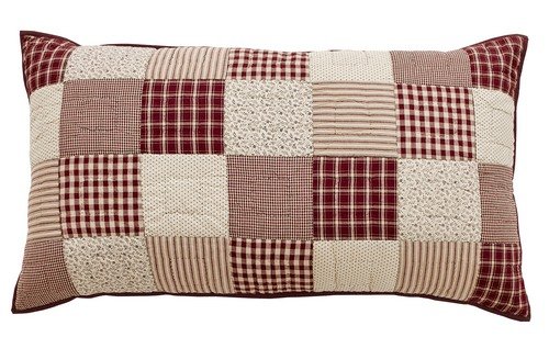 Studio : VHC Brands Publisher : VHC Brands Product Description Our Cheston luxury sham is made from patchwork quilt blocks in burgundy and tea stained creme. The luxury sham works with most king size pillows and have a button closure on the back for easy removal when it's time to wash them. 0