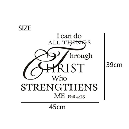 CUGBO Wall Stickers I Can Do All Things Through Christ Who Strengthens Me Wall Decal Quotes Vinyl Removable Mural Rooms Home Decor