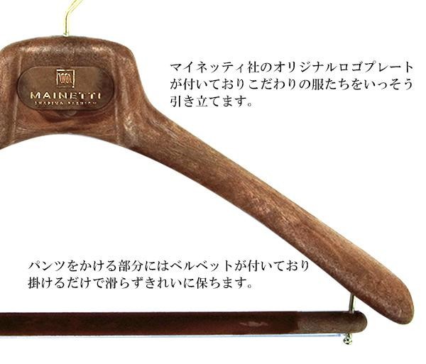 メンズのスーツ、ジャケットに最適なハンガー。人体工学に基づき設計されており、洋服をバランスよく美しく掛けることができます。パンツを掛けるバーにはベルベットが付いており、掛けるだけで滑らずきれいに保ちます。 |