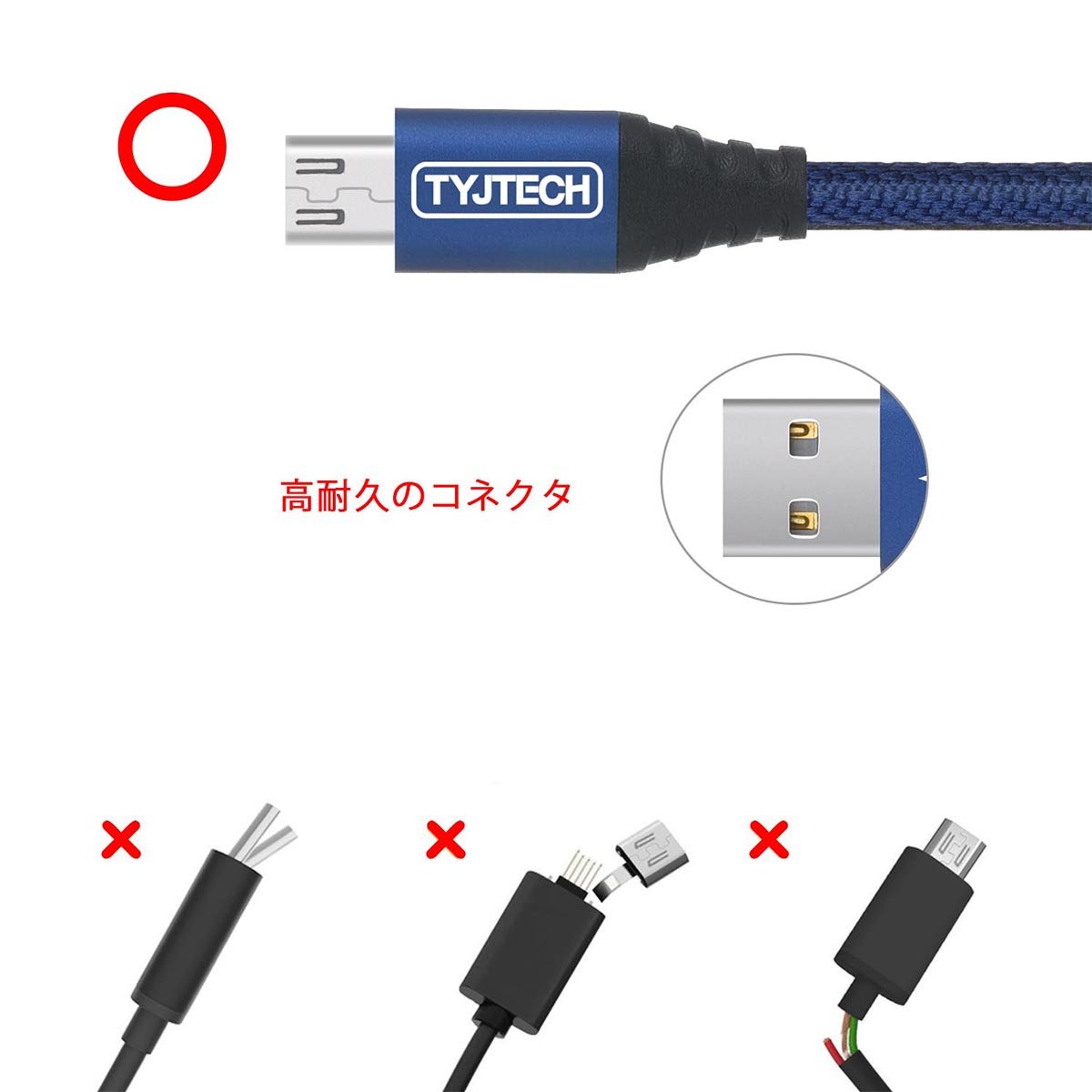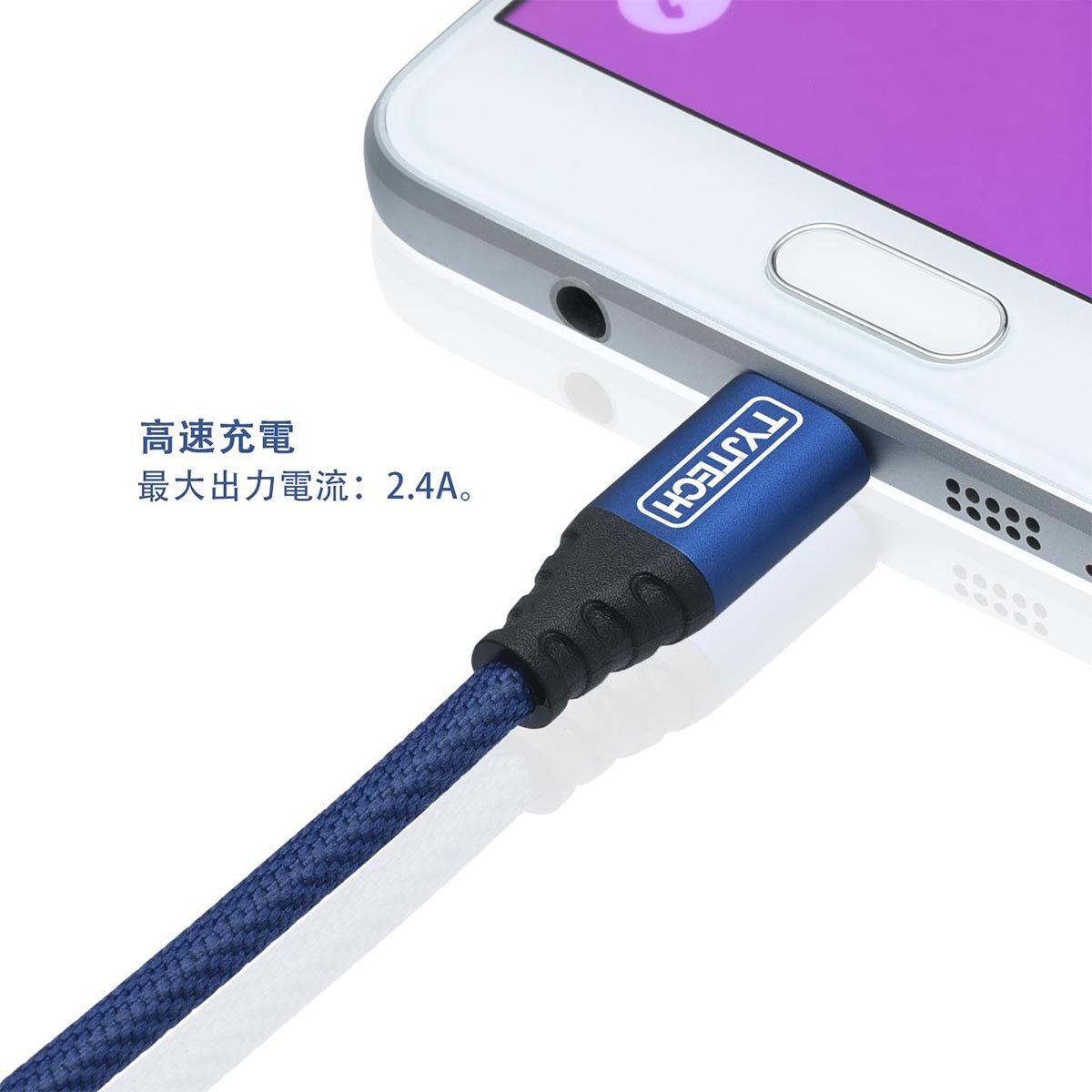By adopting a thicker 23-AWG high-purity oxygen-free copper wire and combining with a quick charger, rapid charging up to high current 2.4 A is possible while data is being transmitted at 5 Gbps high speed