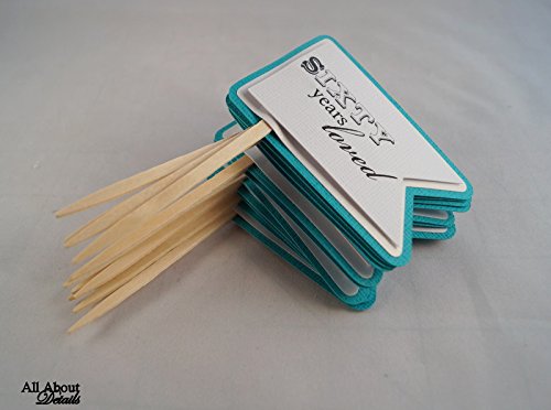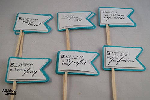 All About Details Teal 60th Birthday Quotes Cupcake Toppers, Set of 12