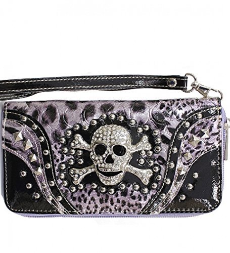 -. Feature : Size: 8(L) X 4.5(H) X 1(W) / Zip-Around Wallet / Rhinestone with cross accent / Handle strap 7 inch drop / Split compartment with mid zip closure / 12 credit card or business card slots / Fabric Lining