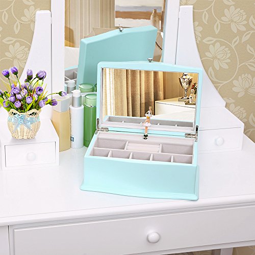 -. Title : SONGMICS Girls Music Jewelry Box Turquoise Wooden Case with Ballerina & Large Mirror UJOW01Q
