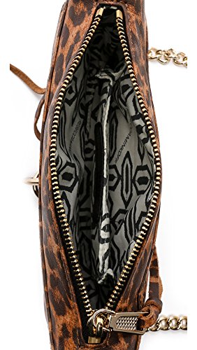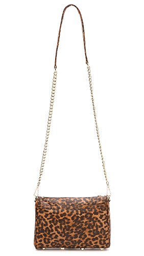A Rebecca Minkoff classic rendered in smooth leather with an animal print. Industrial hardware accents the front pocket, and the zip top opens to a lined interior with 1 pocket. Gold-tone hardware and feet. Dust bag included.