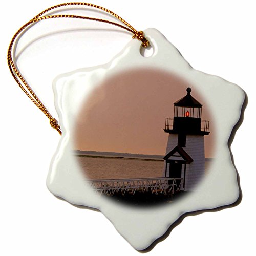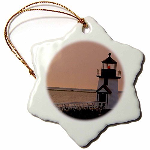 3dRose orn_90957_1 Massachusetts, Nantucket, Brant Point lighthouse - US22 WBI0119 - Walter Bibikow - Snowflake Ornament, Porcelain, 3-Inch