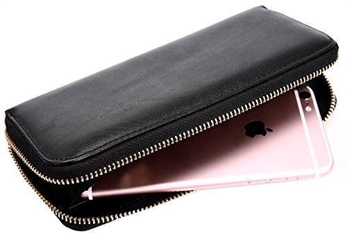 -. Title : Iswee RFID Blocking Women's Leather Zipper Closure Wristlet Slim Wallet Card Case Purse Clutch