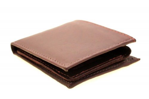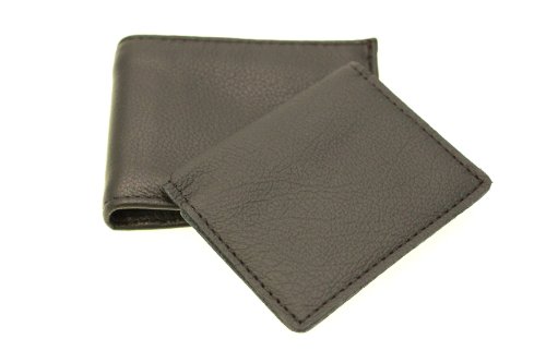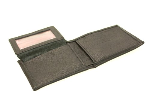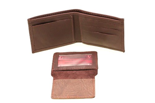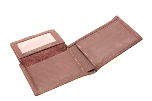 -. Feature : Genuine leather men's bifold wallet / Removable ID cover / 2 currency compartments, 3 credit card slots, 1 ID holder / 4.125X3.375X.75 (10.3cmX8.6cmX1.9cm)
