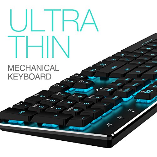 ★ Latest Kailh Blue Switch -- Low Profile Switches, 11.5mm switch height, 6mm ultra-thin suspended keycap, 3mm key travel creates unique mechanical feel, enjoy high-grade games with fast response.