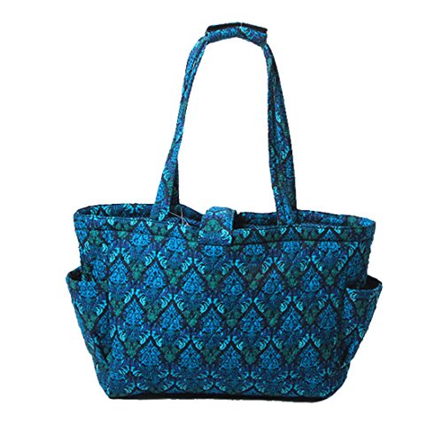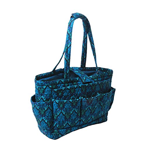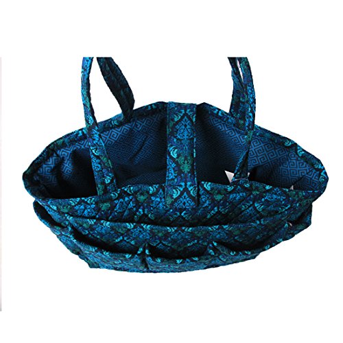 Floral Quilted Cotton Needle Bag Knitting Bag Yarn Storage Tote (Bule Damaks)