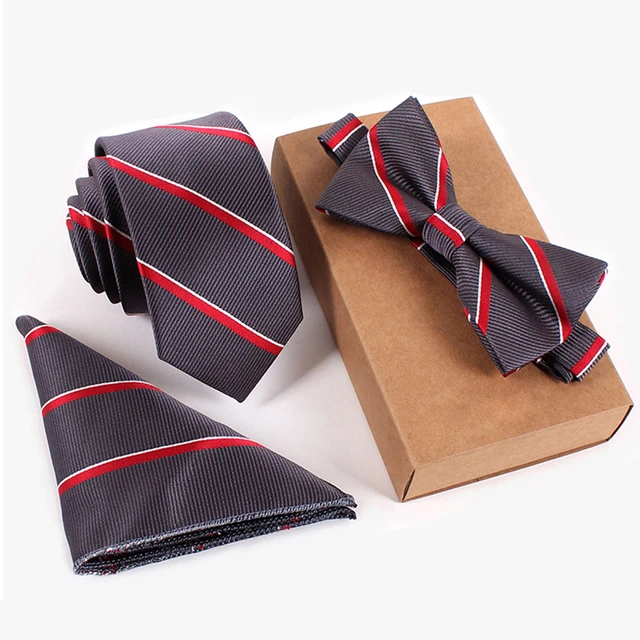 | [해외]넥타이 세트 실버 그레이 레드 화이트 나비 넥타이 손수건 넥타이 남성 넥타이 브랜드 인쇄 |