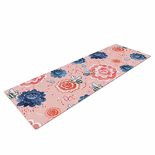 (Kess InHouse)/Yoga/Mats/DIRECT FROM USA/KESS InHouse Nic Squirrell "Bees Please" Pink Floral Yoga Mat, 72" X 24"