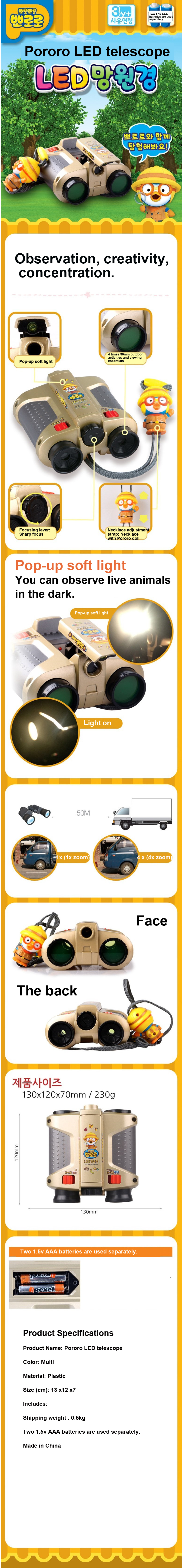 Includes: 1x Pororo LED telescope.Toy Sanitizer 30ml