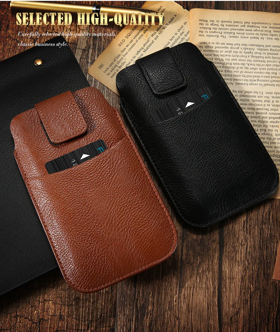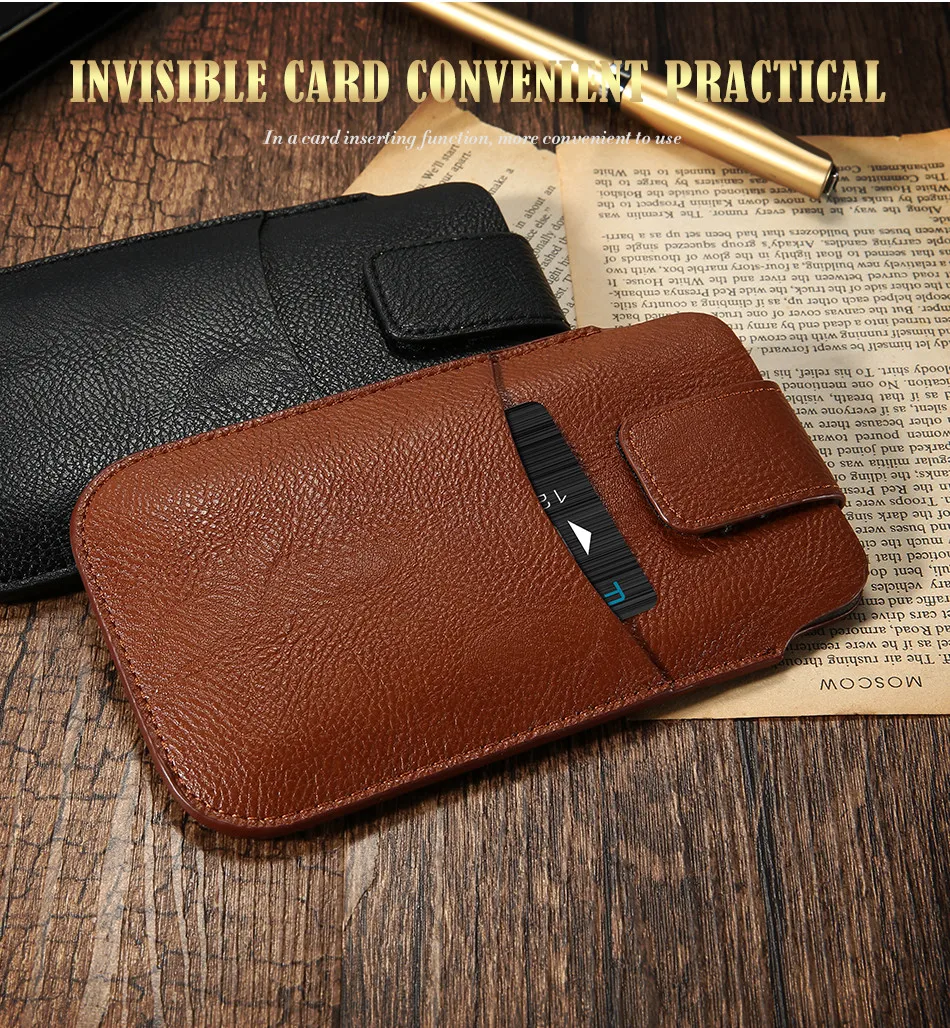 Feature One:PU Leather + Card Slot Holster Belt Clip Mobile Phone Bag Pouch
