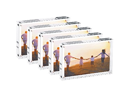 HESIN 5 Pack of 4 x 6 Inch Clear Acrylic Photo Frame Thickness 12+12mm ,Stable Tabletop Magnet Frame Double Sided Picture frame with Gift Box Package Three days shipment ( 5pack)