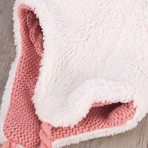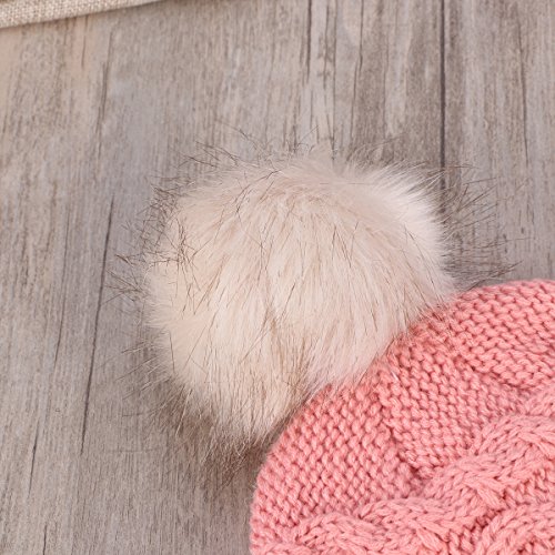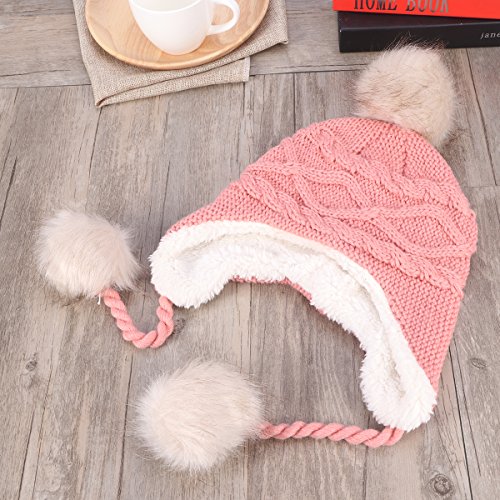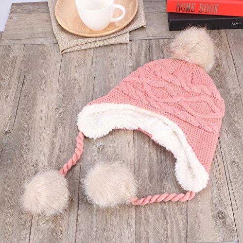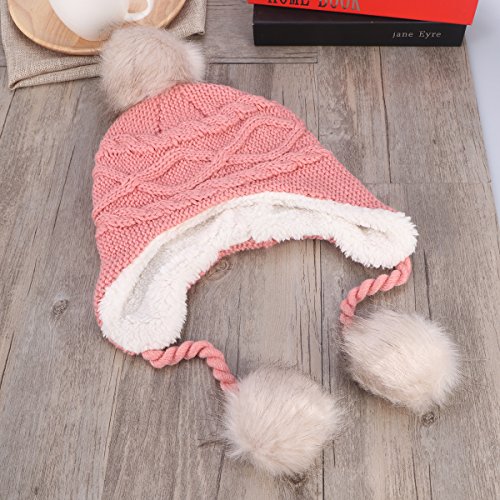 Package Including 1 x Cute Winter Warm Knit Wool Hat Dual Ball Ear Flap with Pom - S (Pink) 0