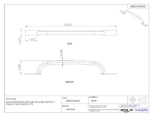 Monroe Steel Weld On Pull Handle, Round Grip, Dull Finish, 2" Projection, Silver Color(Pack of 5)