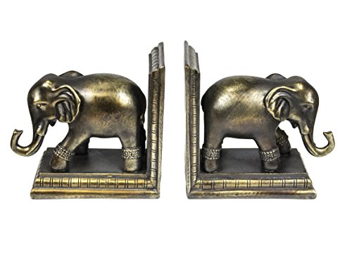 Sagebrook Home 11597 S/2 Elephant Bookends, 12" x 3.25" x 6", Antique Black