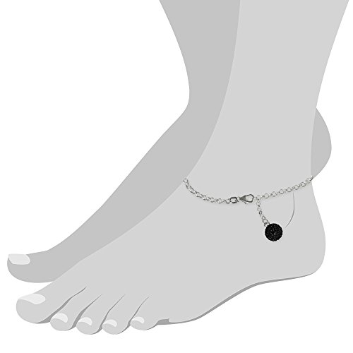 SilberDream anklet gltter ball with black Zirconia, 925 Sterling Silver 9.8 inch SDF010S