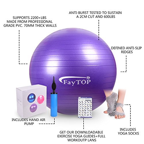 65cm Exercise Ball EXTRA THICK Frosted Surface 2200lb Capacity -Stability Ball, Yoga Ball, Birth Ball, Balance Ball, Pilates Ball, Fitness Ball -Includes: Yoga Socks, User Manual, Quick Pump