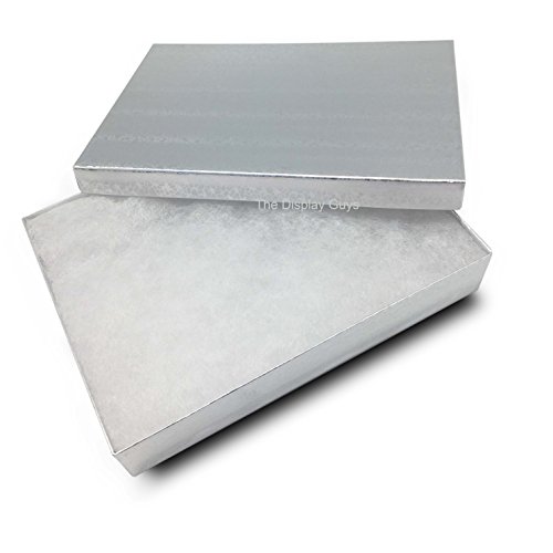 The Display Guys, Pack of 25 Silver 5 3/8x3 7/8x1 inches Cotton Filled Paper Jewelry Box Gift Display Case(#53)