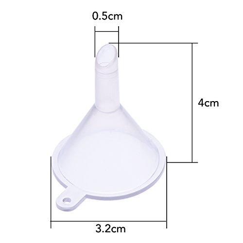 Small funnel measurement: these small funnels are approx. 4 cm in height, the upper diameter is approx. 3.2 cm and the bottom diameter is approx. 0.5 cm