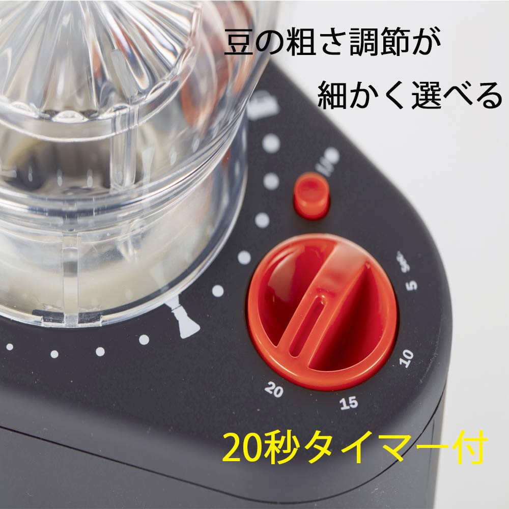 サイズ:高さ27.5×幅17.8×奥行16.3cm 本体重量(kg):1.5 容量:コンテナー/最大でコーヒー豆220g分 定格電圧:AC100V 定格消費電力:160W