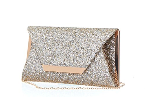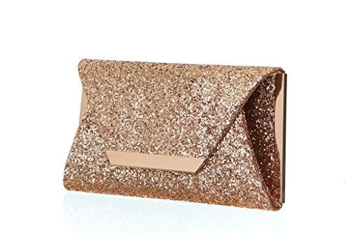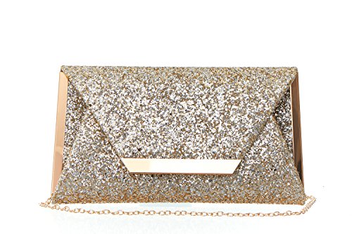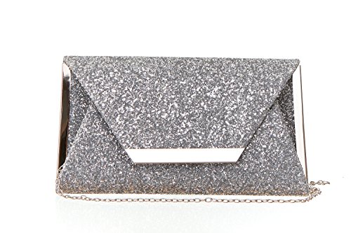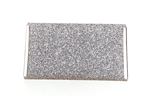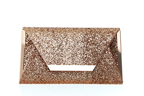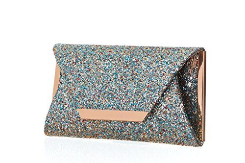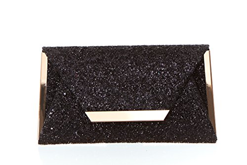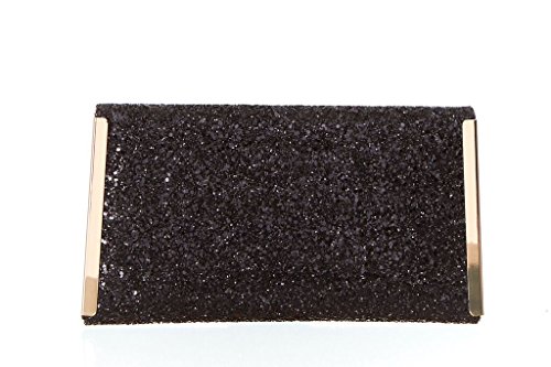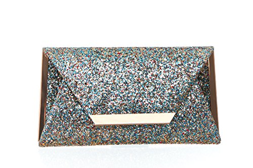 Product Description For the woman that loves to sparkle, you'll never be short on shine with this effervescent clutch lit with metallic or multicolor glitter. The petite bag is angled with sharp corners and closes with a front flap featuring a sleek metal bar. Wow during New Year's Eve, prom or wedding season. 0