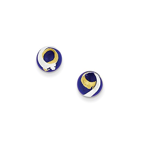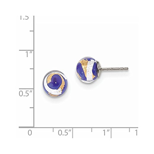 Sterling Silver Blue, gold-tone & Silver Italian Murano Earrings (8mm x 8mm)