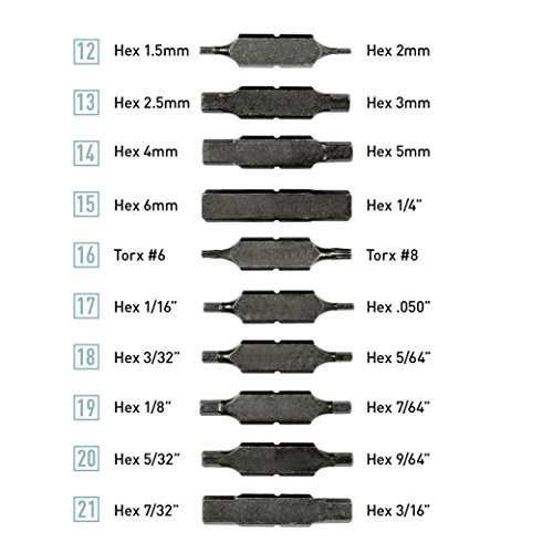 LET'S BE PRACTICAL: Leatherman's flat bit design means all the performance of a standard hex bit in half the size. With 21 double-headed bits in two small sleeves, you can fit more practicality in your pocket (or sheath).