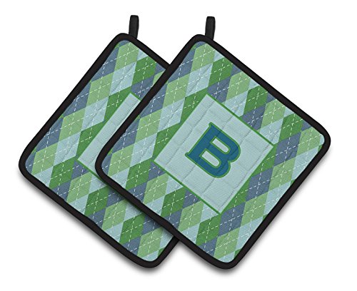 Caroline's Treasures Monogram - Initial B Blue Argoyle Pair of Pot Holders CJ1020-BPTHD, 7.5HX7.5W, Multicolor