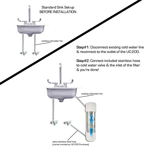 NO THIRD FAUCET HASSLE & SIMPLE TO INSTALL: Connects Directly to your Kitchen Sink's Cold Water Line. Only Takes a Few Minutes. All You will Need is an Adjustable Wrench for Tightening Connections. NEW Install Video Instructions Available, See Product Description for Details. Questions or Non Standard Under Counter Plumbing? Send us an Email or Call CuZn's Customer Support Team @ 800.345.PURE (7873)