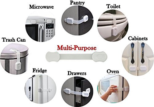 MULTI- PURPOSE SAFETY STRAPS WITH DOZENS USES: Make sure that your baby or toddler is safe by securing cabinets, appliances, drawers, refrigerator, trash bin, toilet seat and more. With these amazing locks you can also keep your stuff neatly organized, as your curious child cannot reach it. Use them to secure your wardrobes or storage cupboards and save yourself time from tidying up!