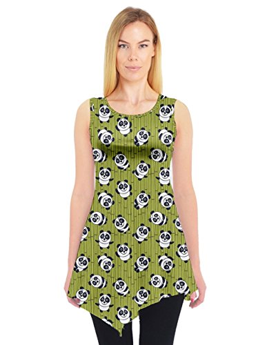 | PattyCandy Womens Panda Bamboo Print Sleeveless Tunic Top, XS-3XL |