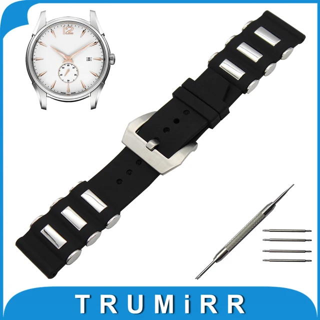 [해외] 21 미리메터 22 미리메터 23 미리메터 24 미리메터 실리콘 고무 시계 밴드 + 너무 대한 hamilton 스테인레스 스틸 사전-v 버클 스트랩 손목 벨트 팔찌 블랙