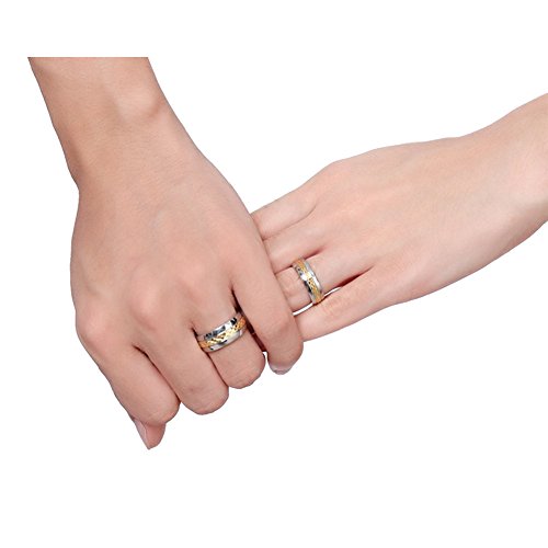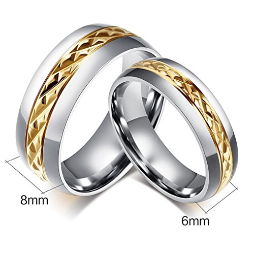 -. Title : Chryssa Novelty Gold Plated 8MM Men Titanium Stainless Steel Couple Wedding Bands for Him and Her 6MM Women Promise Engagement Rings 7 to 12(SZZ-05)